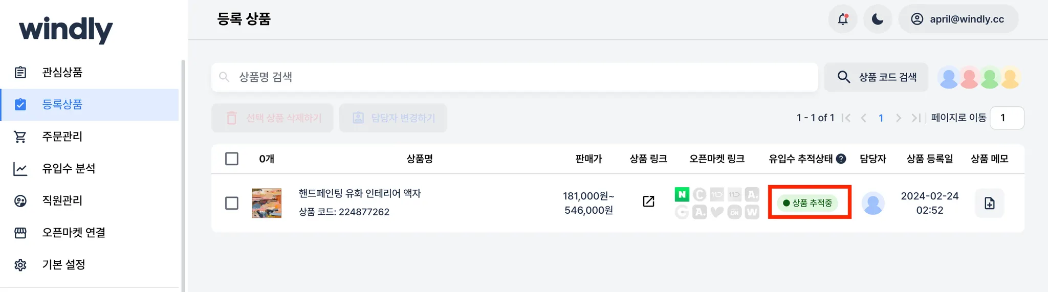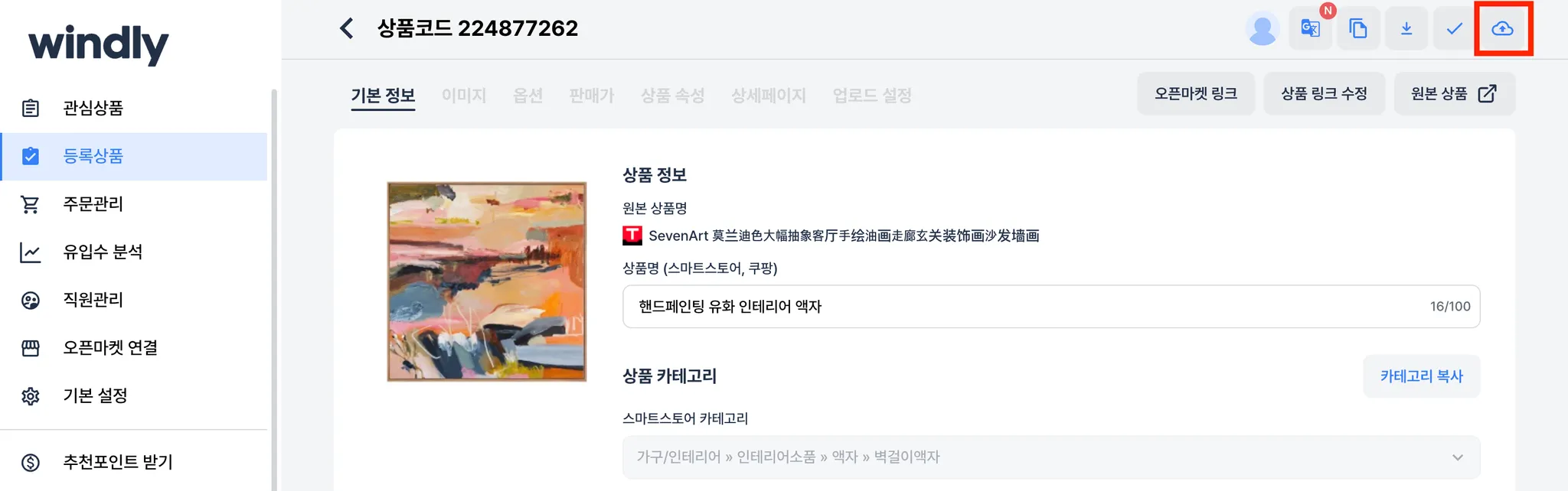 상품명 클릭: 해당 상품을 수정할 수 있는 윈들리 페이지 열기