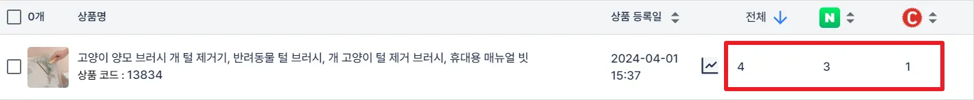 예를 들어, 아래 붉은색 표시된 상품의 경우 아래와 같이 총 4회의 유입(방문자)이 있었어요.