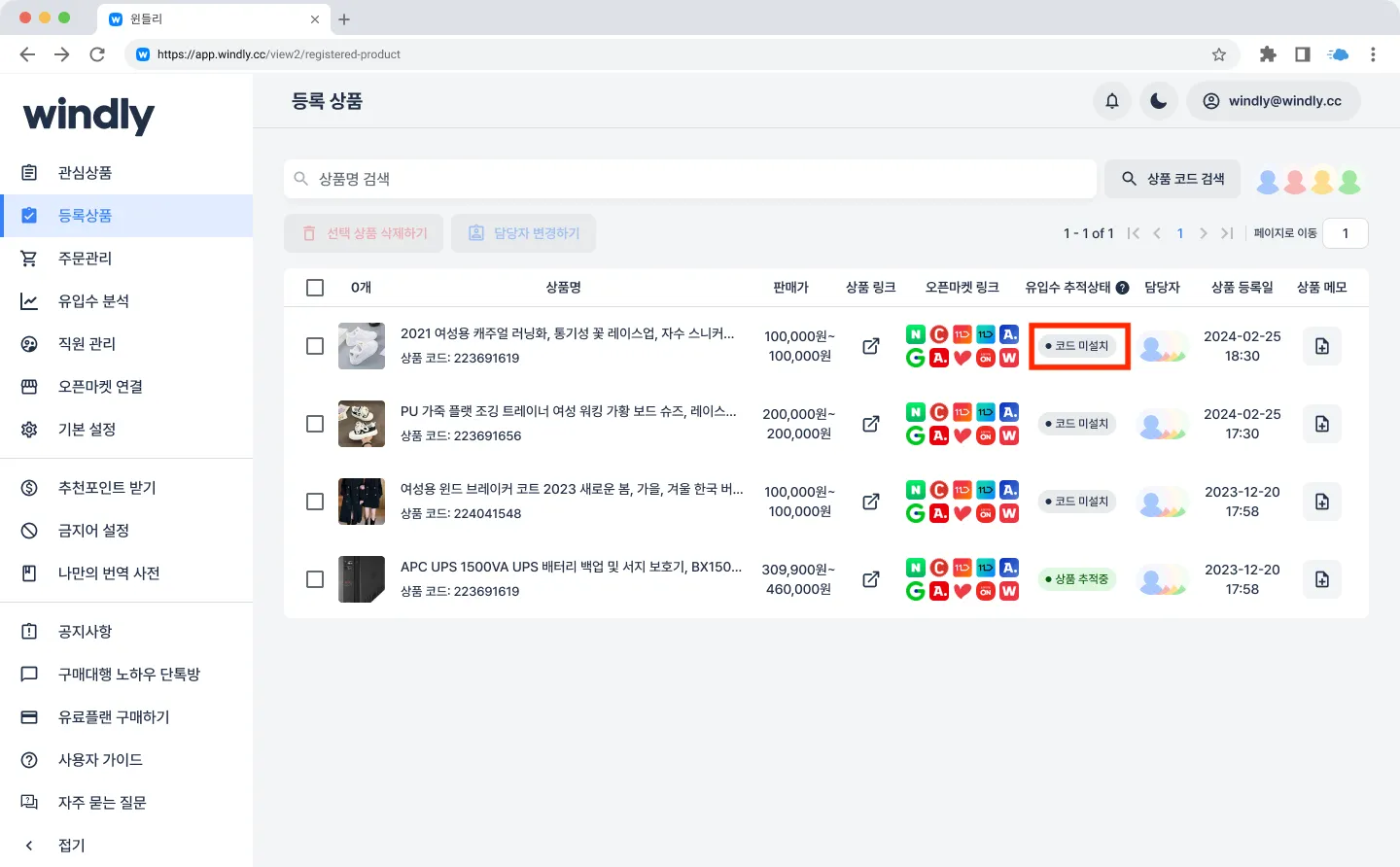 상품내에 윈들리 추적코드가 설치되어 있어야 유입수를 분석할 수 있으며, 본 기능 업데이트 이전에 등록한 상품의 경우 추적코드 설치를 1회 진행해주셔야 해요.