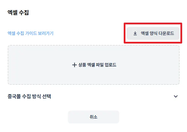 사용 참고 사항 - 중국몰 수집 방식 선택