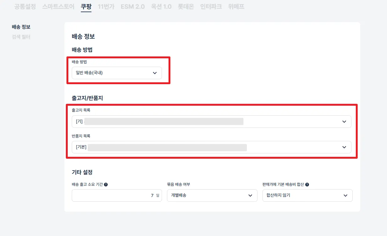 쿠팡 출고지, 반품지 등록 방법(링크)